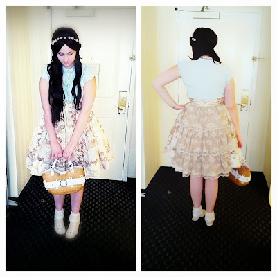 For this year's ConnectiCon, Remi and I helped Tina of Ramble Rori and Caro of F Yeah Lolita with their Lolita Fashion 101 panel! I'd say it's kind of classic-country lolita, maybe? Also, I'm trying out posting this from my phone because my laptop is utterly unresponsive, so let me know if it doesn't turn out right!